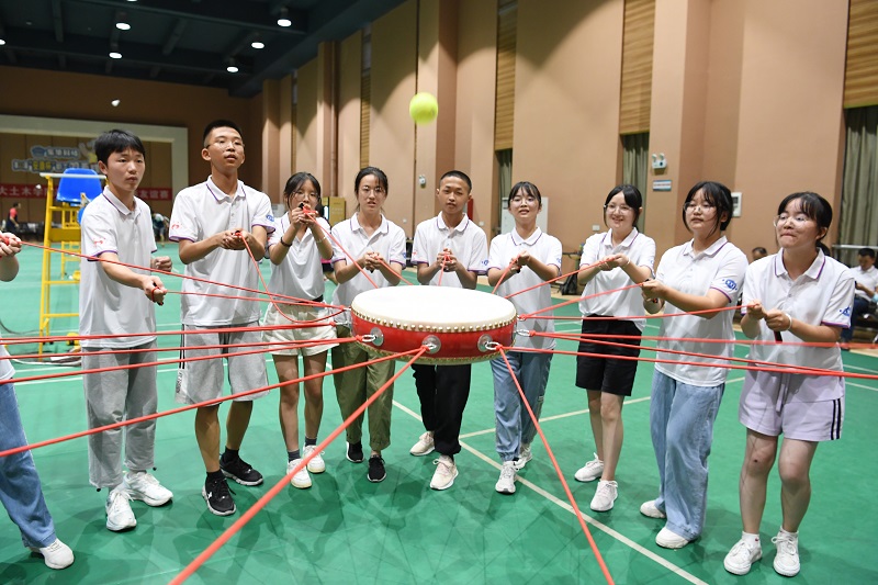 交流分享結(jié)束后,“合力搭建” “重走長(zhǎng)征路”“同心擊鼓”等塑造團(tuán)隊(duì)凝聚力的活動(dòng),給這些不常走出家門的老區(qū)學(xué)子們?cè)鰪?qiáng)了自信和活力。